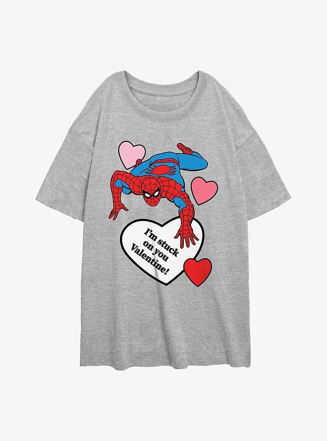 Marvel Spiderman Im Stuck On You Valentine Womens Oversized Sweatshirt