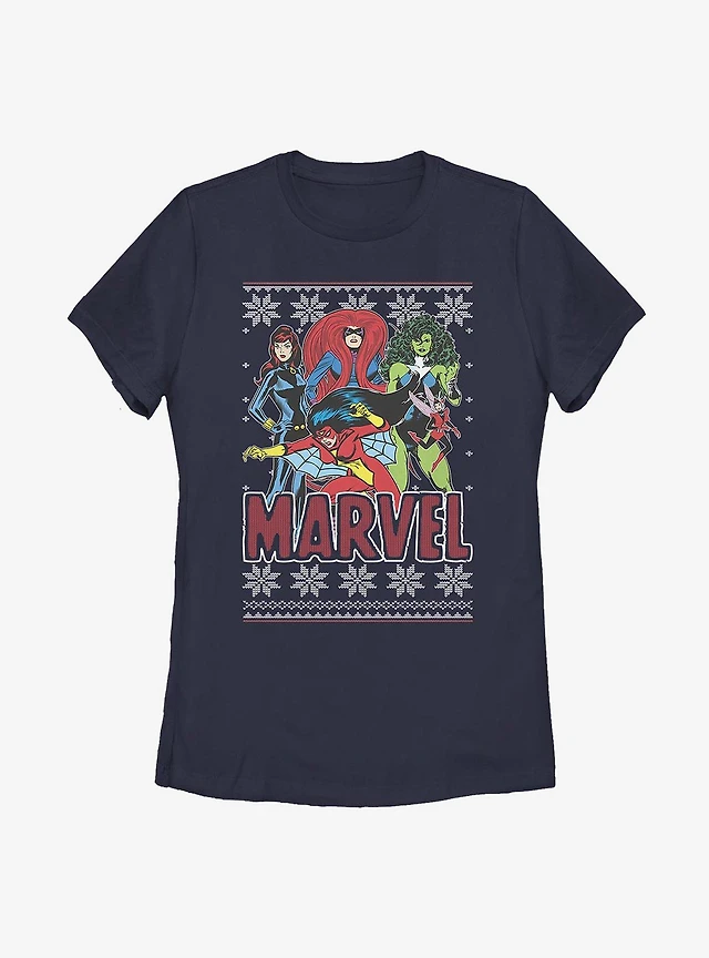 Marvel Heroines Christmas Pattern Womens T-Shirt