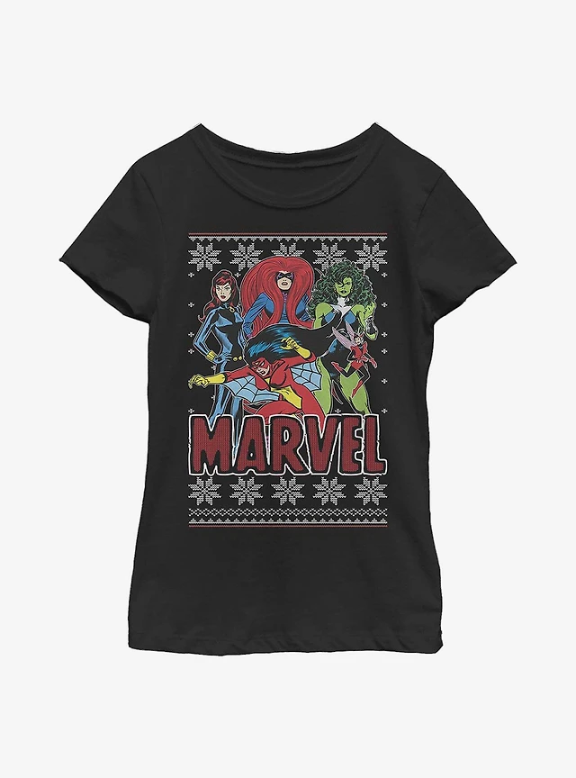 Marvel Heroines Christmas Pattern Youth Girls T-Shirt