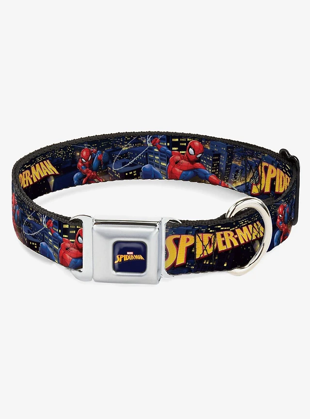 Marvel Spider-Man Logo and Action Skyline Poses Seatbelt Buckle Dog Collar