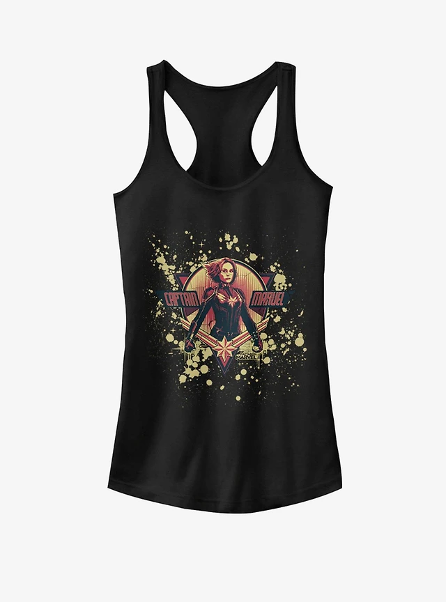 Marvel Captain Marvel Splatter Grunge Marvel Logo Girls Tank