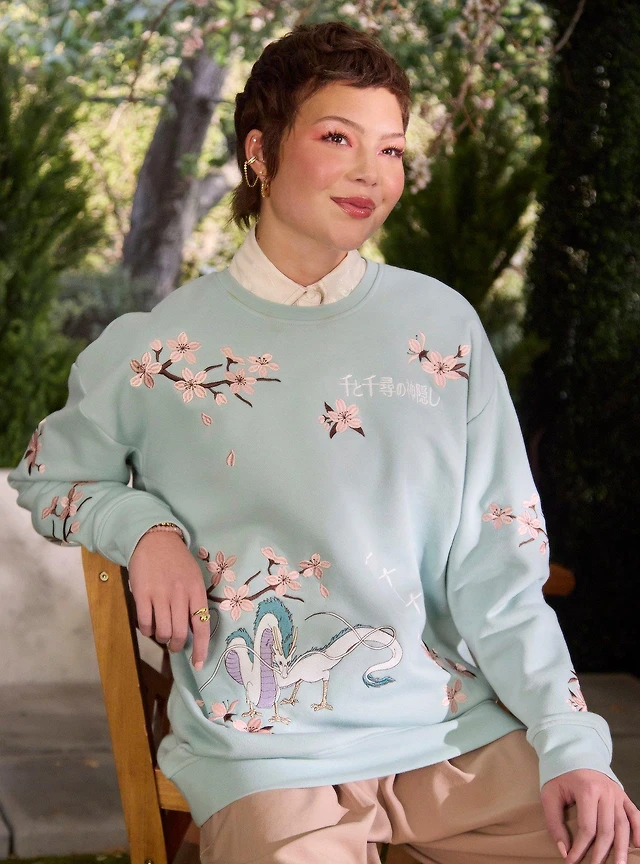 Her Universe Studio Ghibli® Spirited Away Haku Cherry Blossoms Embroidered Crewneck - BoxLunch Exclusive