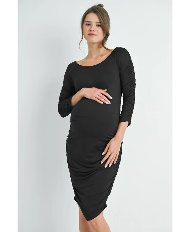 Hello Miz Maternity Bodycon Scoop Neck Side Ruched Dress