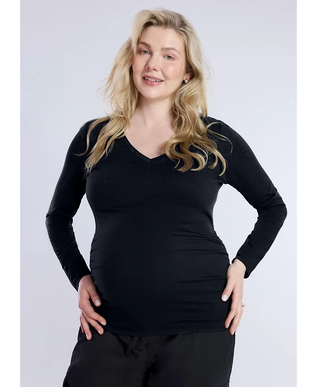 Pinkblush Maternity Charcoal Ribbed Scoop Neck Long Sleeve Top