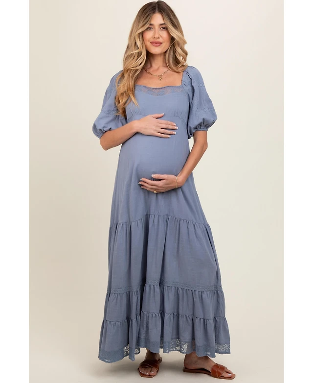 kimi + kai Maternity Lace Trim Midi Dress