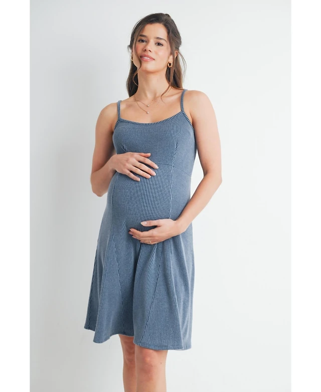 Pinkblush Maternity Deep Teal Striped Ribbed Knit Sleeveless Midi Dress