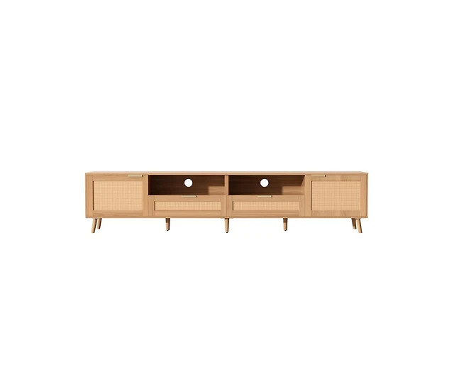 Streamdale Furniture Rattan Tv Stand for TVs up to 90", Modern Farmhouse Media Console