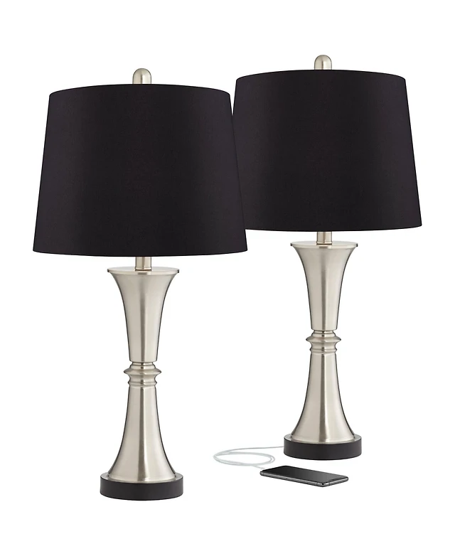 360 Lighting Modern Table Lamps 26" High Set of 2 Dark Espresso Bronze Metal Off Linen Cone Shade for Bedroom Living Room House Home Nightstand