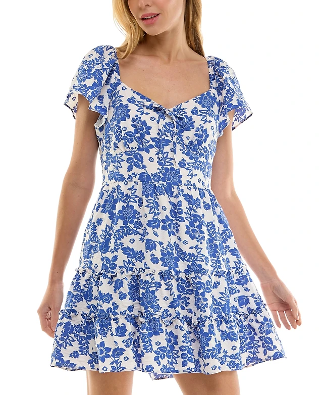 Crystal Doll Juniors' Dotted-Sleeve Fit & Flare Dress