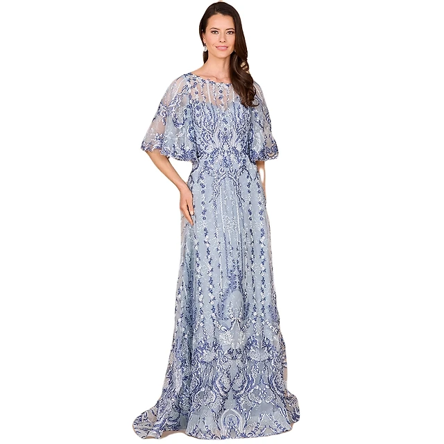 Lara Women's Embroidered, Cape Sleeve A-line Gown
