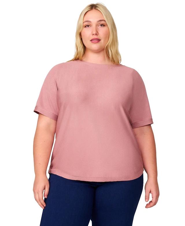 Melissa Paige Plus Ribbed-Yoke Pullover Sweater