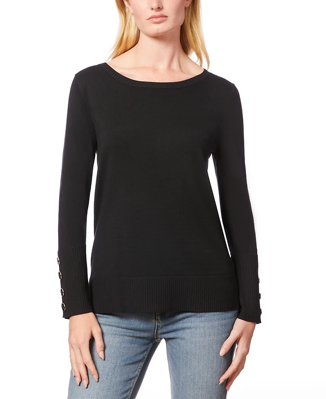 Melissa Paige Women's Fine Gauge Boat-Neck Buttoned-Cuff Sweater