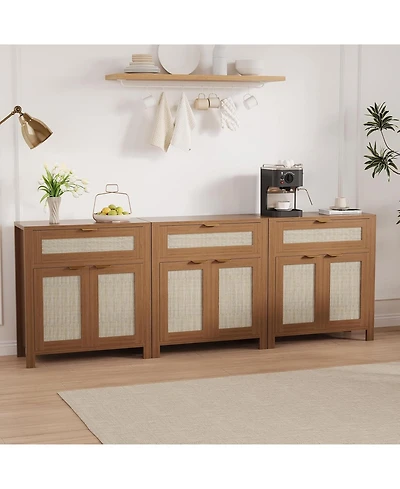 gaomon Rattan Sideboard Buffet Cabinet with Drawer, Farmhouse Kitchen Accent Storage, Boho Wooden Coffee Bar Console