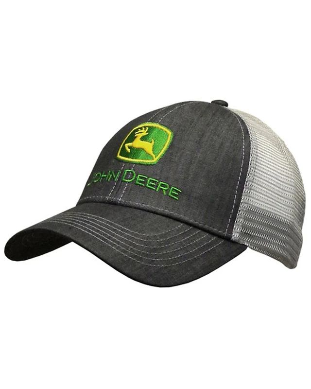 John Deere Men's Grey & White Embroidered Logo Mesh-Back Ball Cap