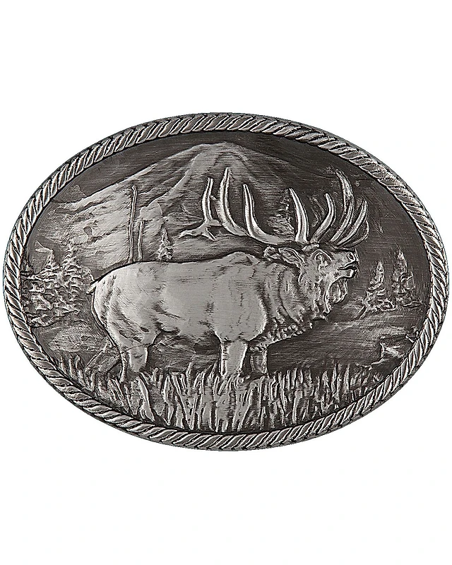 Montana Silversmiths Gunmetal Outdoor Series Wild Elk Carved Buckle