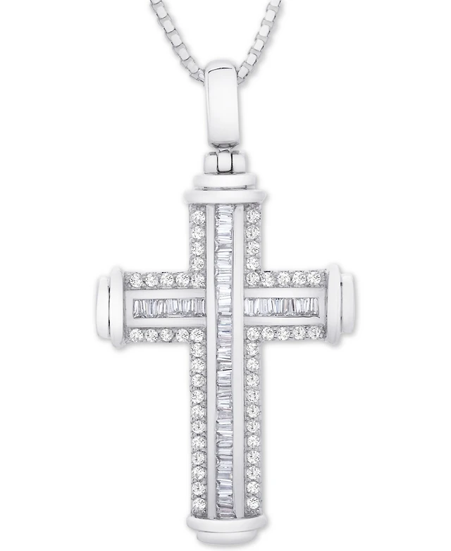 Men's Diamond Pave Cross 22" Pendant Necklace (1 ct. t.w.) in 10k White Gold