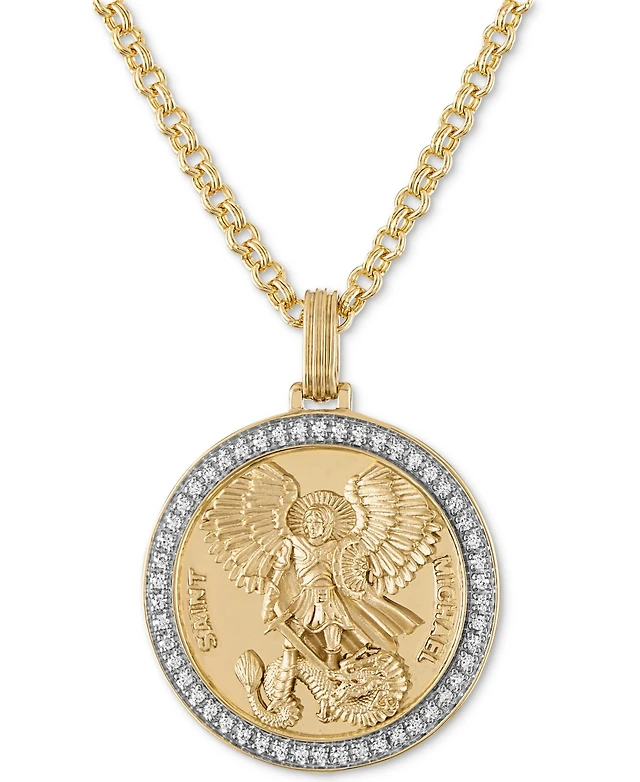 Macy's Men's Diamond Cross Medallion Pendant Necklace (1/5 ct. t.w) in 14k Gold Over Sterling Silver, 22"