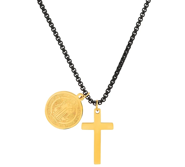 Steeltime Men's 18k Gold Plated Stainless Steel Cross Pendant