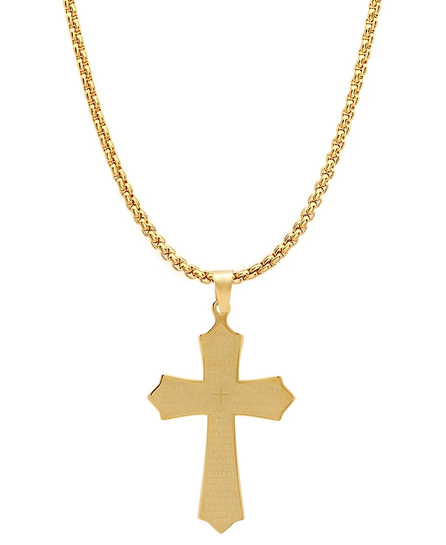 Steeltime Men's Our Father Lord's Prayer Cross Pendant