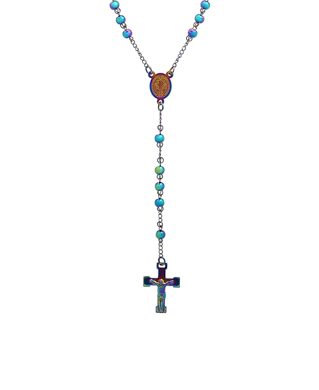 Steeltime Men's Stainless Steel Prayer Rosary 27" Lariat Necklace
