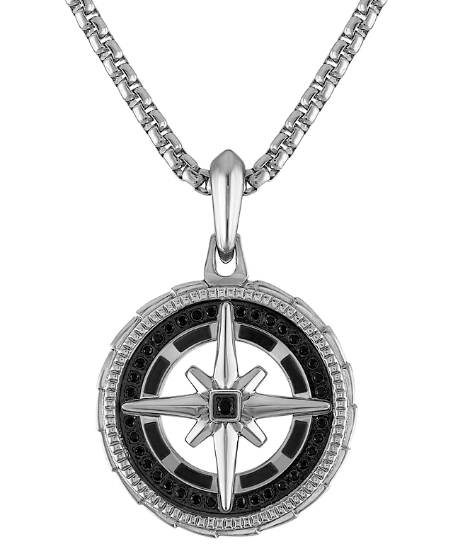 Bulova Stainless Steel Black Diamond Marine Star Pendant Necklace, 24" + 2" extender