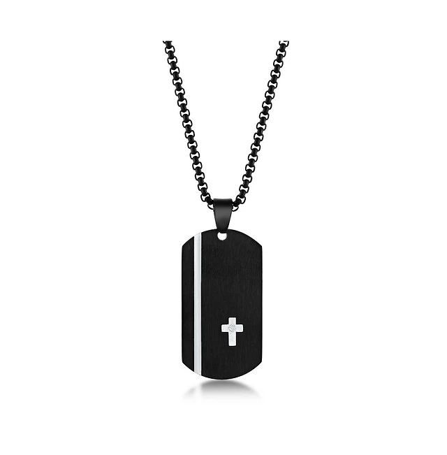 Men's Black Diamond Accent Cross Pendant in Black Ion Plated Stainless Steel