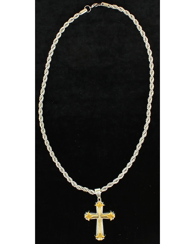 Men's Stainless Steel Black & Silver Polished Cross Necklace