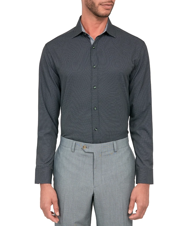 Report Collection Men's Long Sleeve 4-Way Geo Print Stretch Dress Shirt