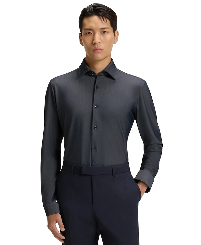Report Collection Men's Long Sleeve 4-Way Tonal Geo Dress Shirt