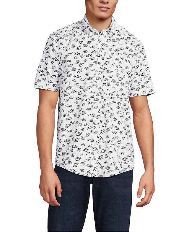Tommy Hilfiger Men's Patterned Linen Button Up Short Sleeve Shirt