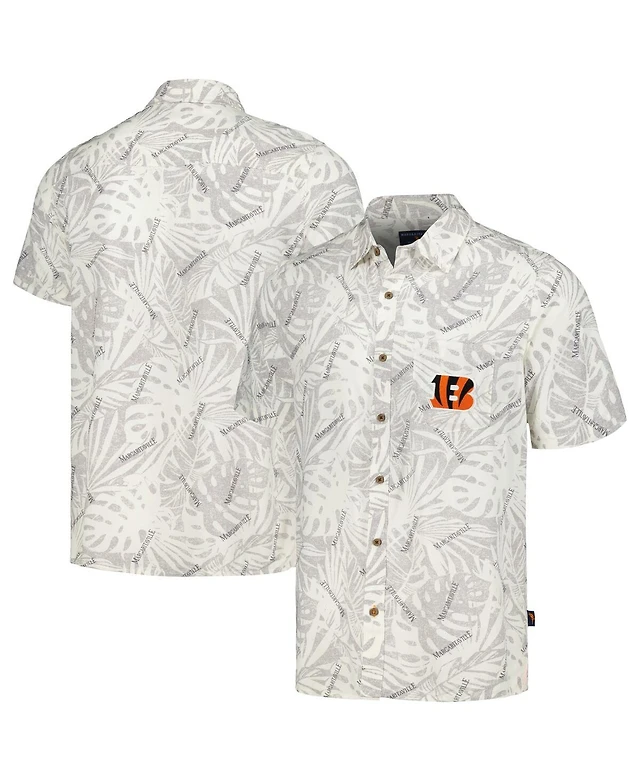 Margaritaville Men's Tan Los Angeles Rams Sand Washed Monstera Print Party Button-Up Shirt