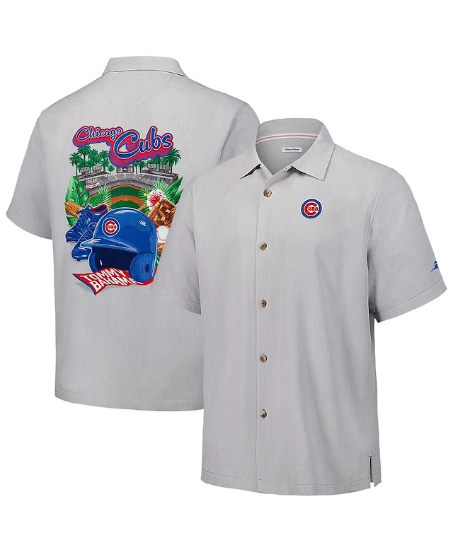 Tommy Bahama Men's Gray Chicago Cubs Hit and Run Silk Camp Button-Up Shirt