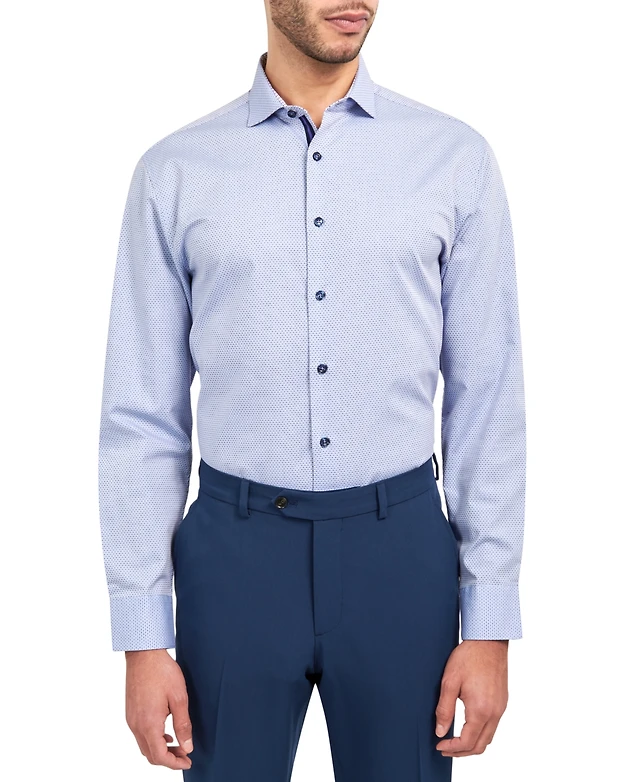 Calabrum Men's Regular Fit Dot Print Wrinkle Free Performance Dress Shirt