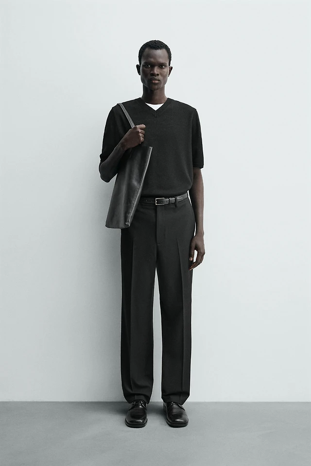 TEXTURED STRAIGHT FIT PANTS