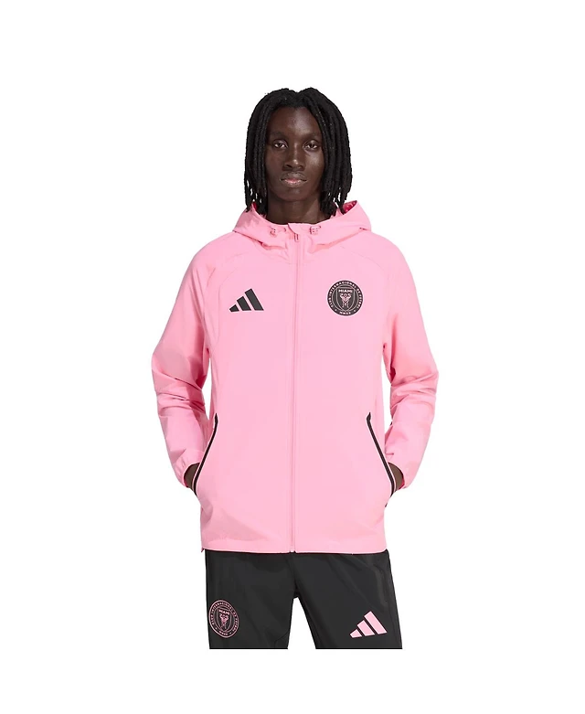 Adidas Men's Light Pink Inter Miami Cf Tiro Travel Full-Zip Hooded Windbreaker Jacket