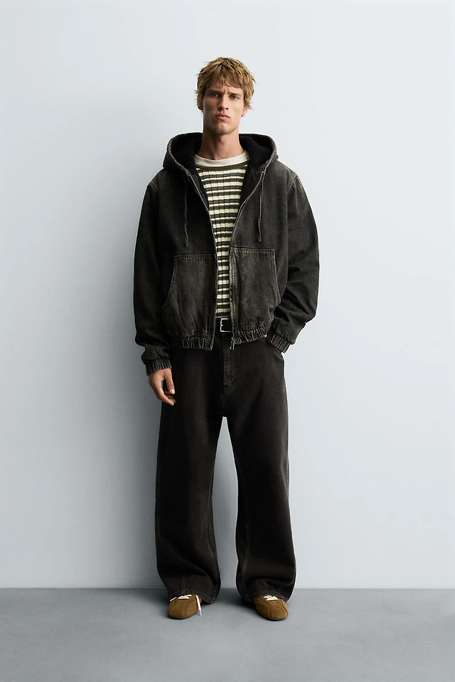 FLEECE LINED DENIM JACKET WITH HOODIE