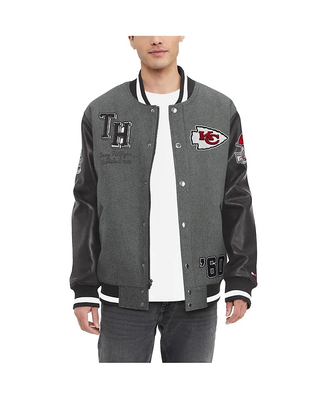 Men's Tommy Hilfiger Heather Gray, Black Kansas City Chiefs Gunner Full-Zip Varsity Jacket