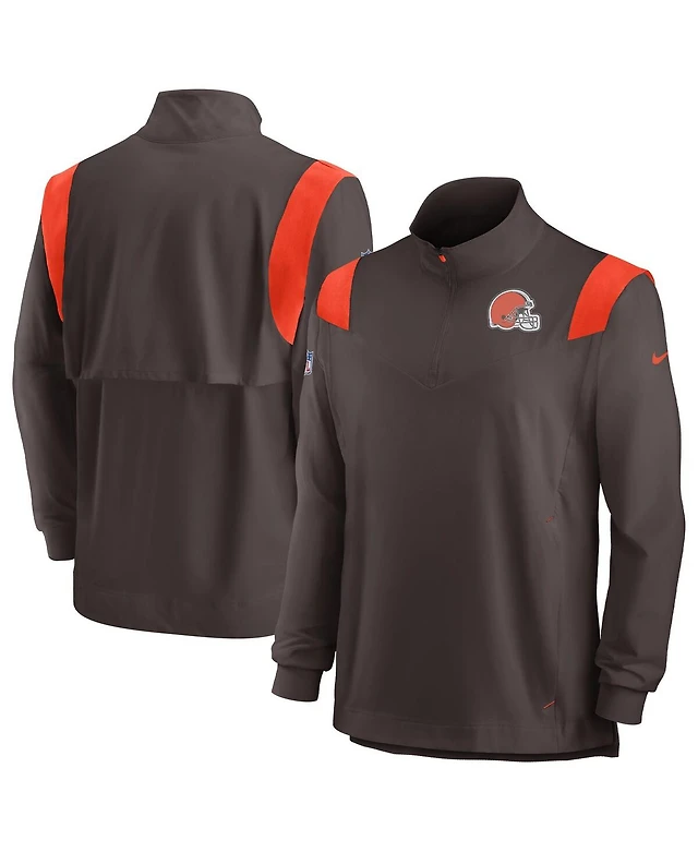 Men's Nike Brown Cleveland Browns Sideline Coach Chevron Lockup Quarter-Zip Long Sleeve Top