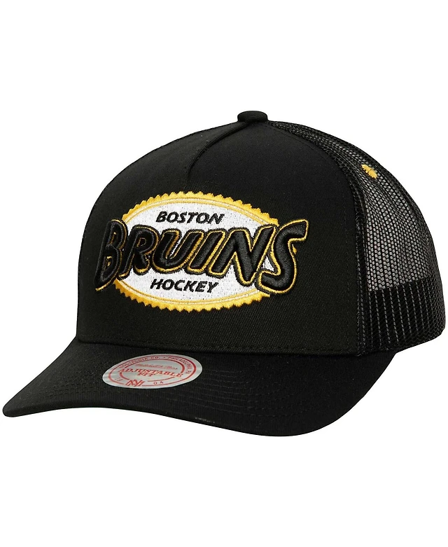 Men's Mitchell & Ness Black Boston Bruins Team Seal Trucker Snapback Hat