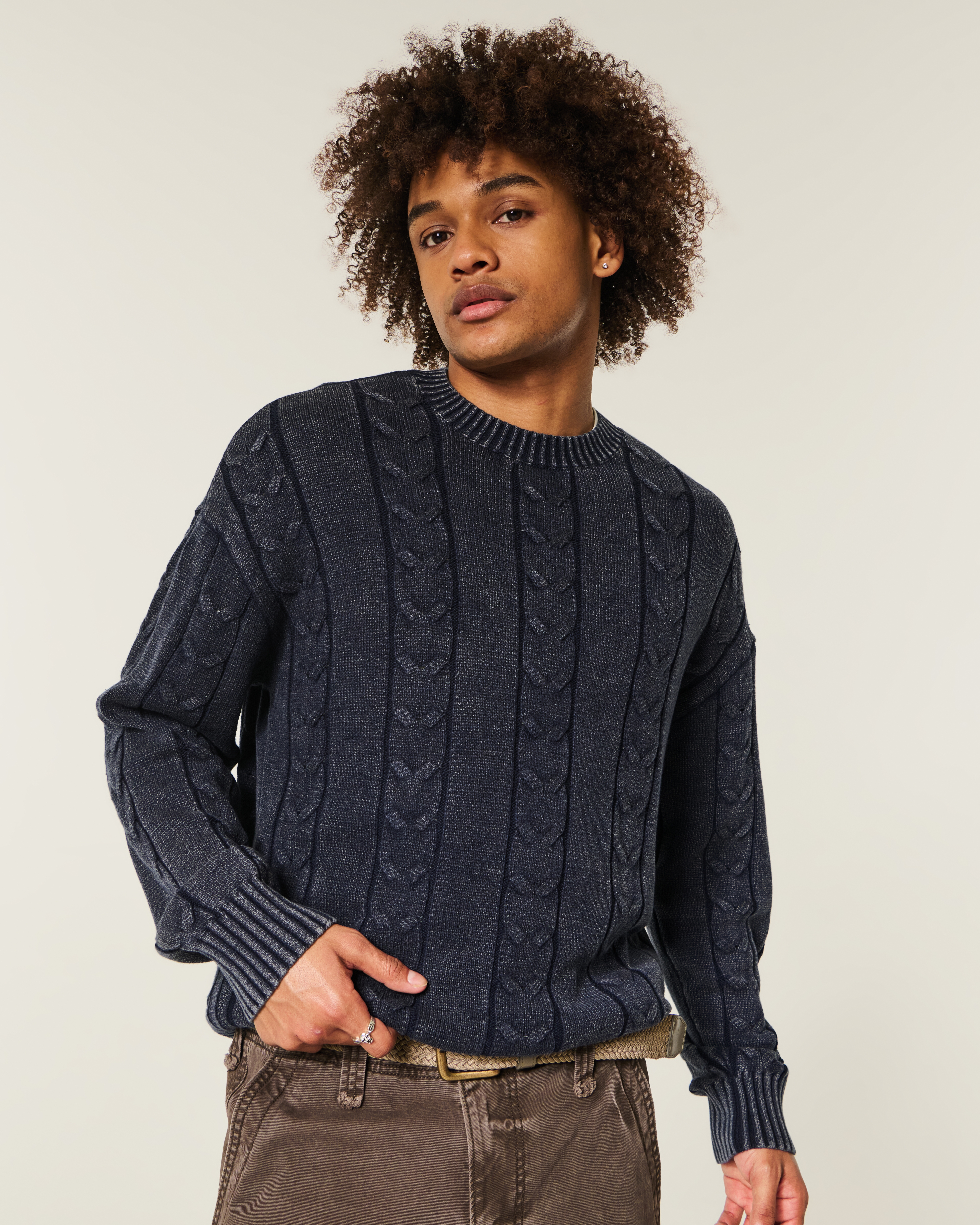 Textured Knit Crewneck Sweater