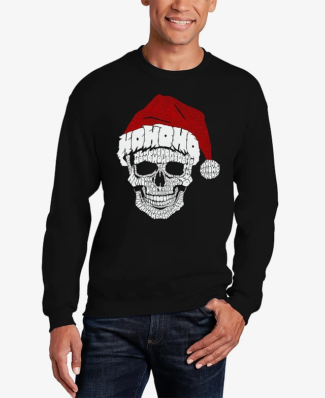 La Pop Art Men's Word Crewneck Flower Skull Sweatshirt