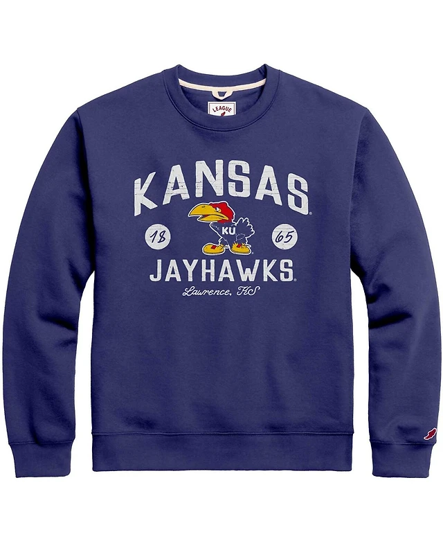 Men's League Collegiate Wear Heather Gray Distressed Kansas Jayhawks Tall Arch Essential Pullover Sweatshirt