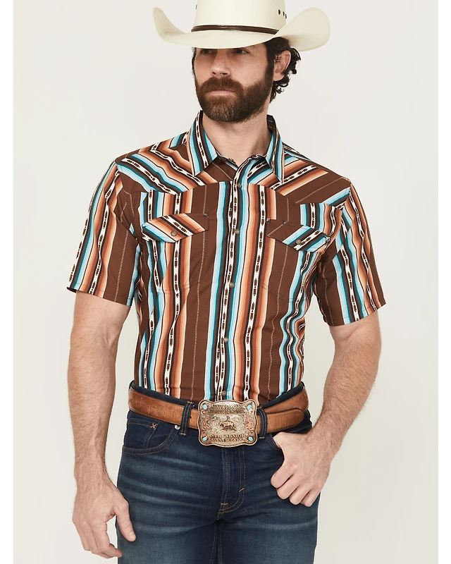 Moonshine Spirit Men's Tikki Pole Southwestern Stripe Short Sleeve Snap Western Shirt