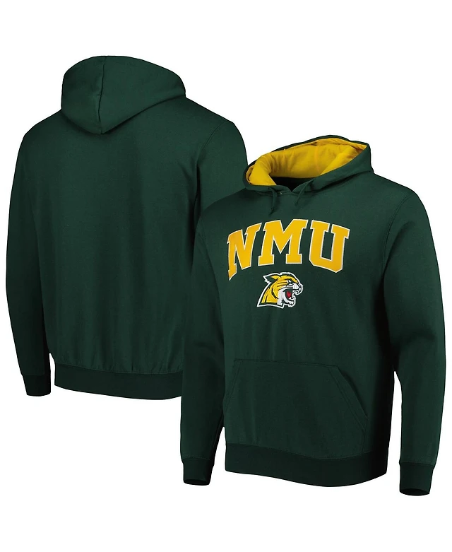 Men's Colosseum Green Northern Michigan Wildcats Arch & Logo Pullover Hoodie