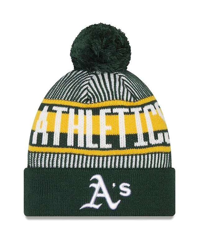Men's New Era Green Oakland Athletics Marl Cuffed Knit Hat with Pom