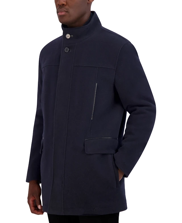 Cole Haan Men's Classic-Fit Car Coat with Faux-Leather Trim