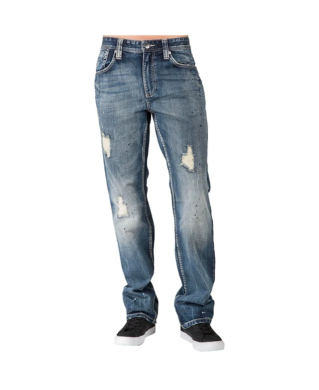 Men's Relaxed Straight Distressed Vintage like Tint & Whisker Denim Jeans