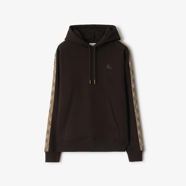Check Trim Cotton Hoodie in Clove brown - Men | Burberry® Official