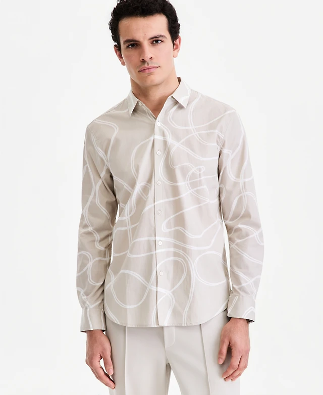 Alfani Men's Long-Sleeve Fluid Swirl Poplin Shirt, Macy's Exclusive