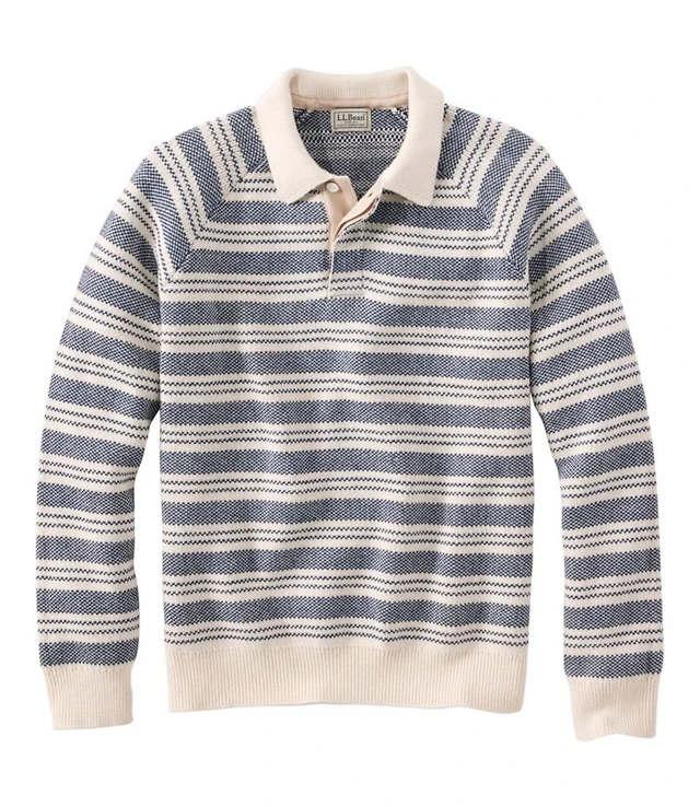 Men's Wicked Soft Cotton/Cashmere Sweater, Rugby Polo, Stripe